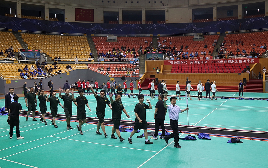 【概要描述】 5月24日上午,由北京市总工会、北京市体育局主办的“奋进新时代、劳动创未来”2025年首都职工拔河比赛在工人体育馆进行,京恒(北京)保安服务有限公司代表队参加了比赛,经过团队拼搏晋级16强,荣获2025年首都职工拔河比赛“体育风范奖”。